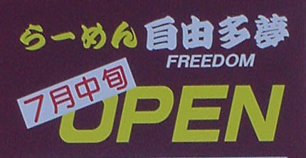 「らーめん自由多夢(FREEDOM)」が七月中旬オープンとの事です。