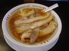 麺は中細で若干縮れがみられ、やや硬めで茹でられてくる。チャーシューは肩ロースで