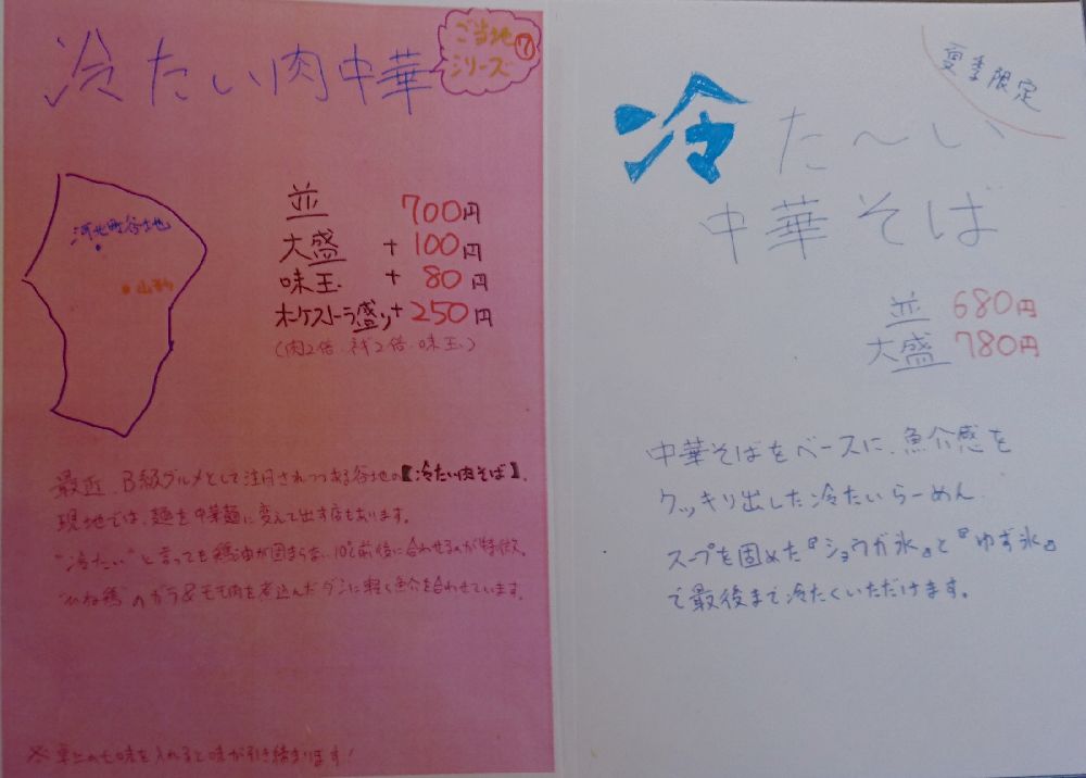 写真に撮れなかったメニュー 野菜ラーメン\680(税抜き) (税抜き表示2005.12.05. by taka) 以前のメニュー(税抜き表示2005.06.27. by taka)はこちらからどうぞ メニュー ランチメニュー 夏季限定メニュー |