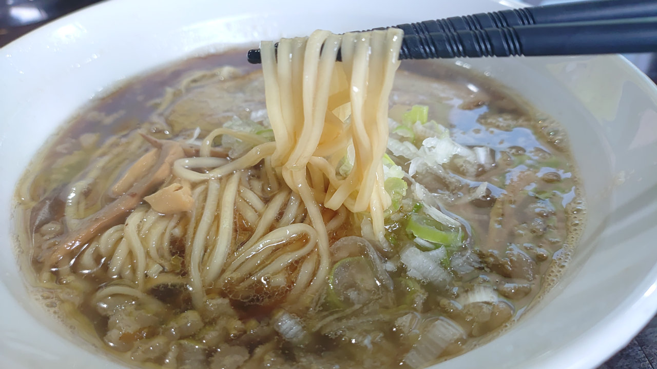 麺は、中くらいの太さで、わずかに柔らかめの仕立て。この優しい食感が、あっさりスープをよく絡め取り、口の中で一体感が生まれます。