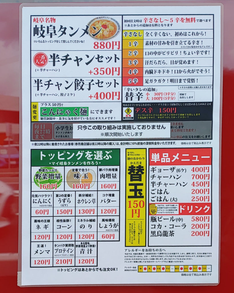 久しぶりの岐阜タンメンが地元で食べられるようになったことにまずは感動です。