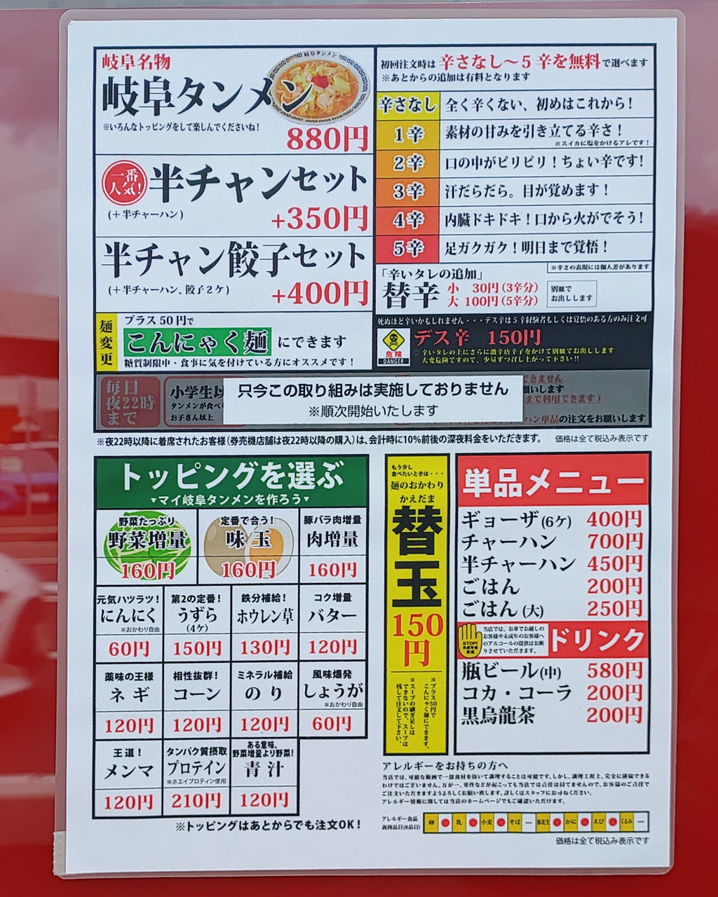メニュー構成は非常にシンプルで、主軸となるのは「タンメン」のみ。辛さの段階選択や、豊富なトッピングの追加で、自分好みにカスタマイズできる仕組みです。