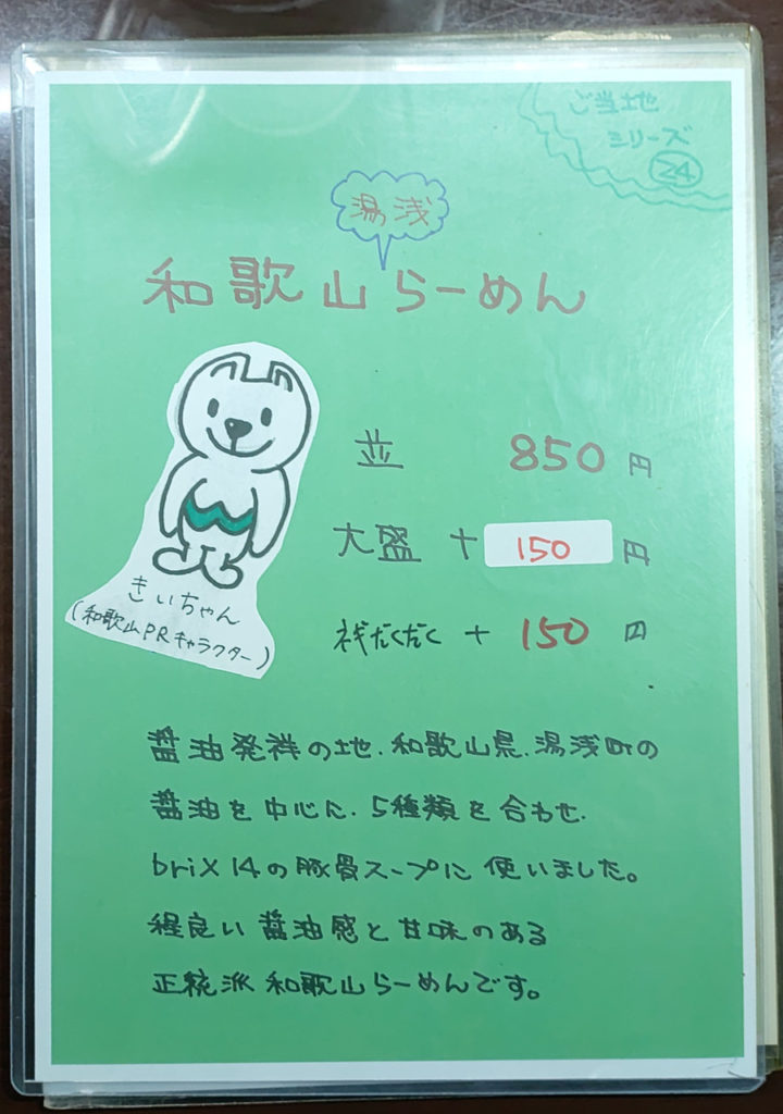 定番メニューではなく、限定の和歌山らーめんで提供されており、こちらをオーダー