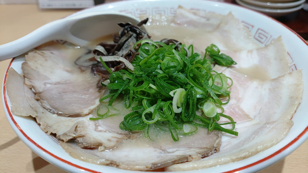 月曜なので丸鶏も提供されていますが、やはり博多ラーメンかなと。奮発してチャーシュー麺をオーダー。