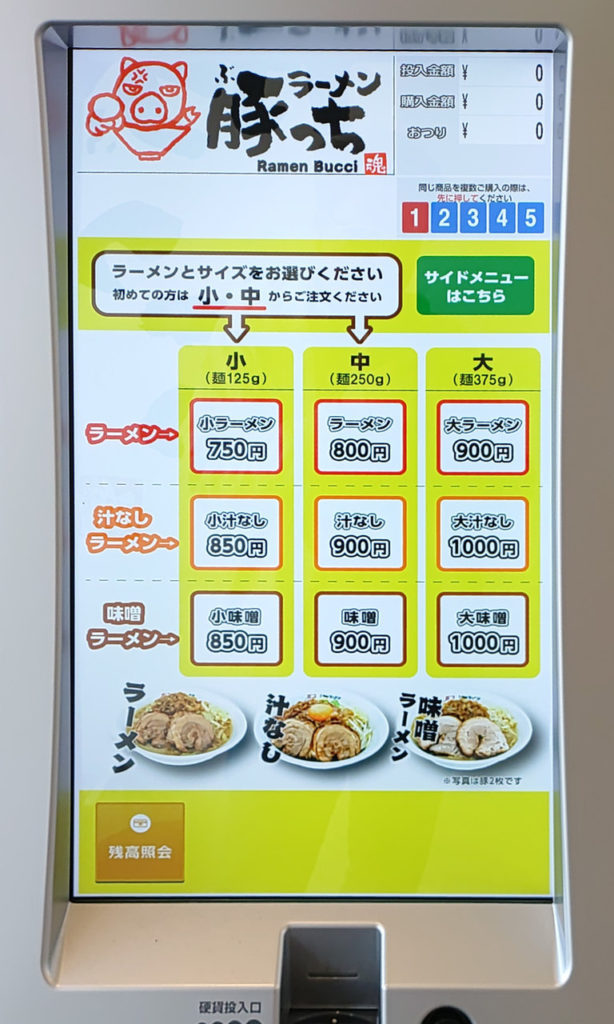 今回は初めてでもあり基本の一杯を味わうべく「ラーメン」の中サイズを選択し、さらにチャーシュー1枚を追加で購入しました。